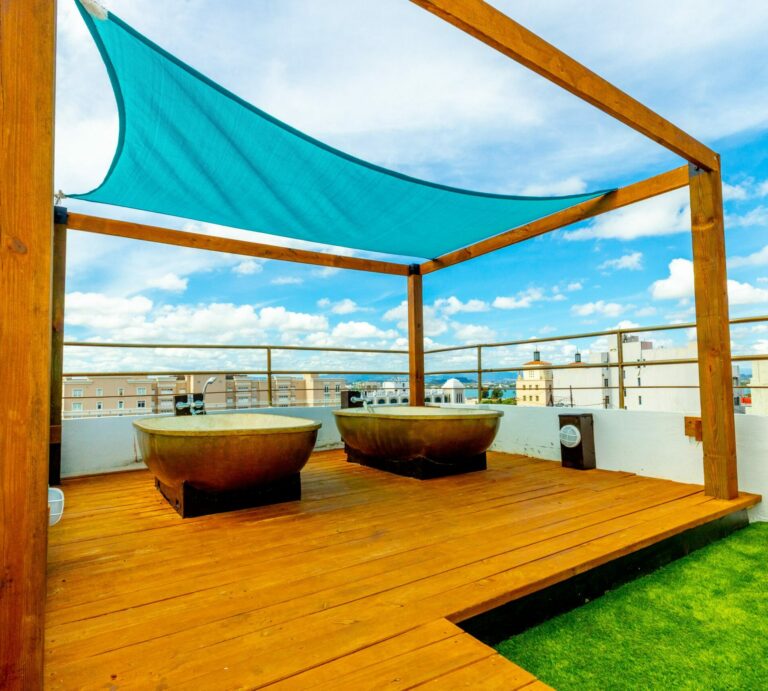 Each cozy room is air-conditioned and has a comfortable bed with plush pillows and microfiber linens and a private bath, fully equipped with microfiber towels. Our sun deck offers guests a stunning experience with magical views of Old San Juan. Watch the cruises as they disappear into the bay or enjoy the historical views of San Cristobal Fort next to the open Caribbean Sea. From tanning to reading, enjoy our comfortable lounge chairs, as well as our stone bathtubs provided for deep relaxation in fresh water at your own desired temperature.
